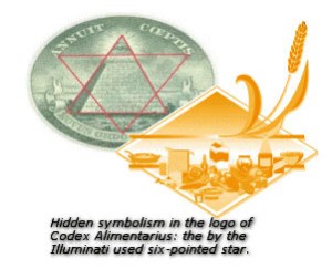 Logo Illuminati dan logo Codex Alimentarius (yang berwarna kuning)
