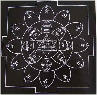 Ditemukan di Kataragama di Srilanka, sebuah situs ziarah yang terkenal untuk kepercayaan Hindu dan Budha. Ukiran ini berasal dari abad ke-3 SM, dengan huruf  Tamil ‘Om‘ di tengah. Dipamerkan di Museum für Völkerkunde, di Basel.