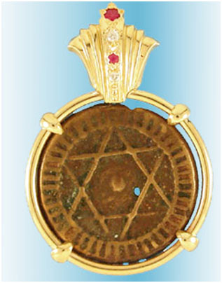 Perhatikan simbol Hexagram pada logam pemberat timbangan yang hampir pudar ini, yang berasal dari abad ke-2 SM.