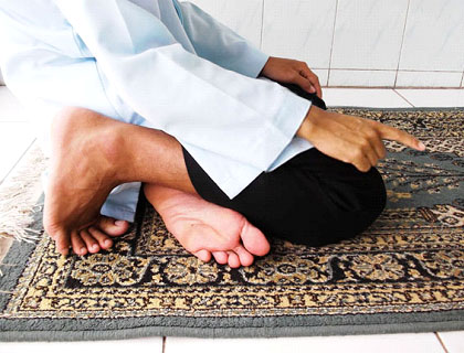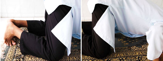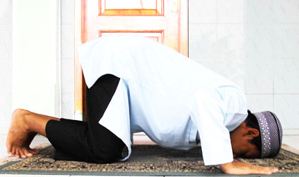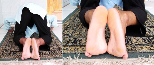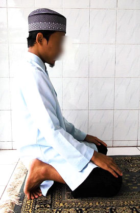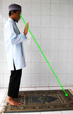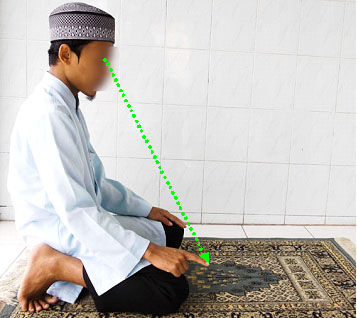 3.6.  Tujukan pandangan mata kearah tempat sujud. Dan dilarang pandangan mata bergentayangan keatas – kebawah – kekiri dan kekanan.