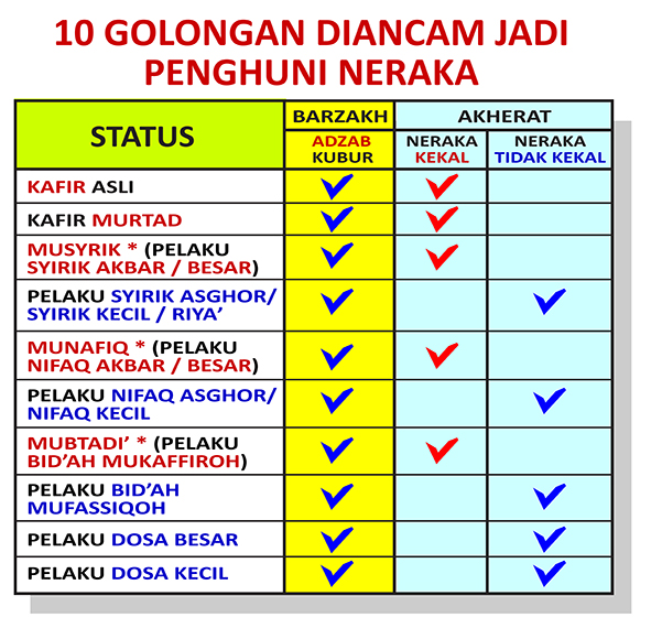 A] Penyebab seseorang masuk neraka abadi (selamanya) :