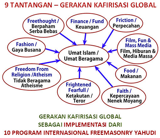 Pembahasan kita terhadap 9 tantangan ummat ini, mudah-mudahan dapat menjadikan kaum Muslimin sadar atas titik-titik rawan yang telah jauh-jauh hari dibidik oleh Freemasonry Yahudi.