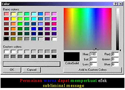 Kedua, dengan penggunaan berbagai alat tambahan seperti musik, warna kontras, dan berbagai teknik pengolahan di studio, maka kekuatan “Subliminal Message” ini semakin bertambah kuat.