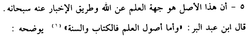 “Ilmu itu adalah apa saja yang dibawa oleh para shohabat Nabi Muhammad صلى الله عليه وسلم. Kalau ‘Ilmu itu tidak berasal dari shohabat Rosuulullooh صلى الله عليه وسلم, maka ia bukan ‘Ilmu.”[12]
