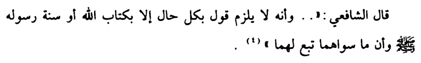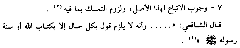 “Bahwasanya tidak semestinya suatu pernyataan dalam keadaan apapun kecuali adalah dengan Kitabullooh (Al Qur’an) dan Sunnah Rosuul-Nya. Dan bahwa selain keduanya adalah mengikutinya (– Al Qur’an dan As Sunnah — pent).”[9]