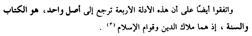 “Menurut mereka (– para ‘Ulama – pent) bahwa ke-empat dalil ini kembali kepada satu pokok yaitu Al Qur’an dan As Sunnah. Karena keduanya adalah keseluruhan dari Islam dan bahkan tonggaknya.”[5]