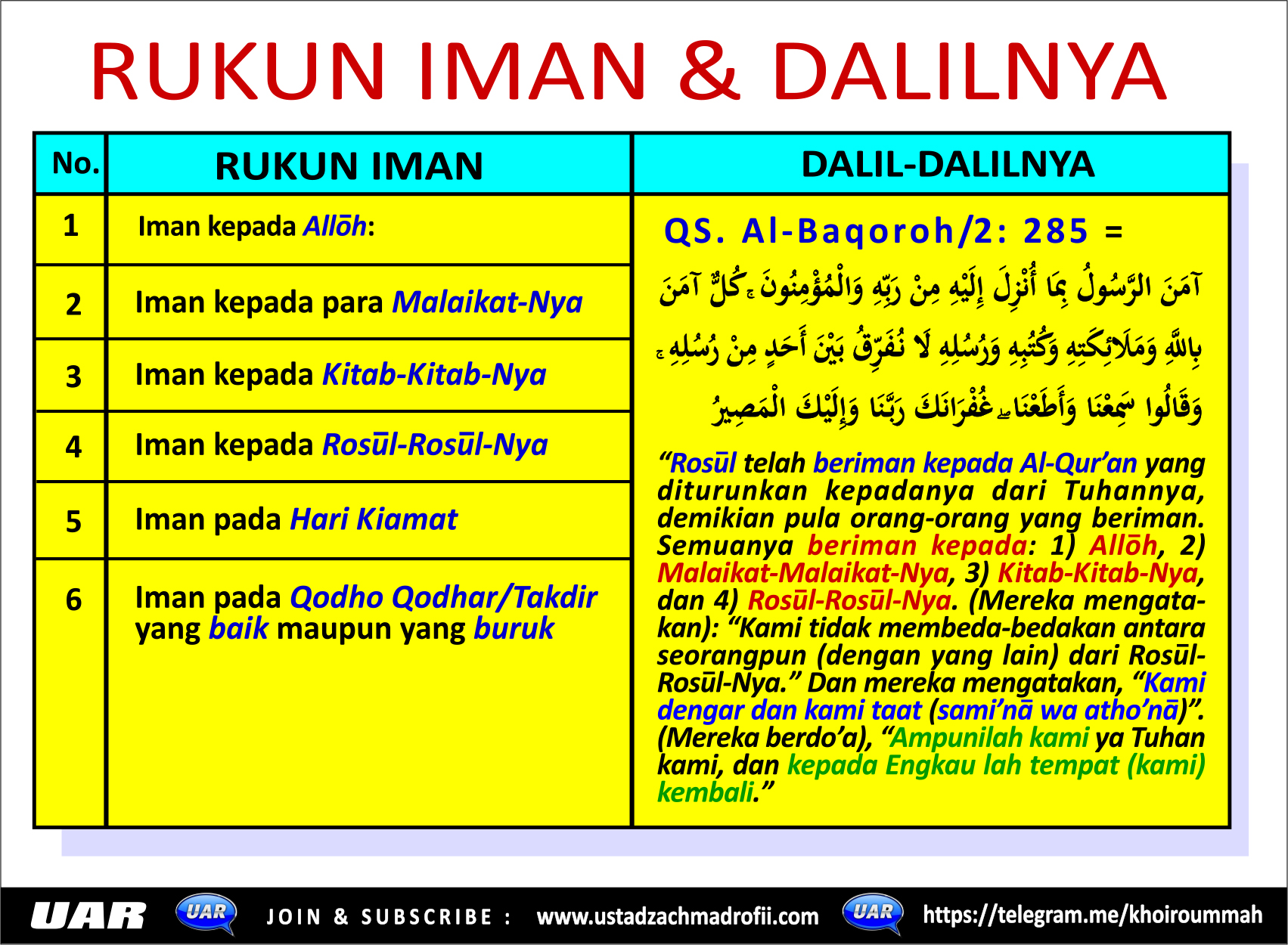 Bagan-1C. Rukun Iman dan Dalilnya (lanjutan)