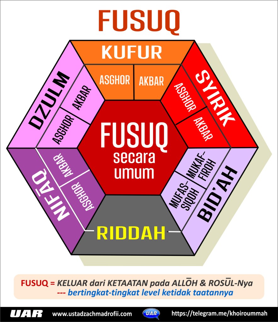Bagan berikut ini menggambarkan “Fusũq” dalam MAKNA secara UMUM-nya yaitu: “Keluar dari Ketaatan pada Allōh سبحانه وتعالى dan Rosũl-Nya صلى الله عليه وسلم” :