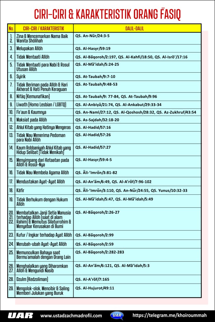 Gambar/Bagan #5 – Ciri-Ciri / Karakteristik Orang Fãsiq