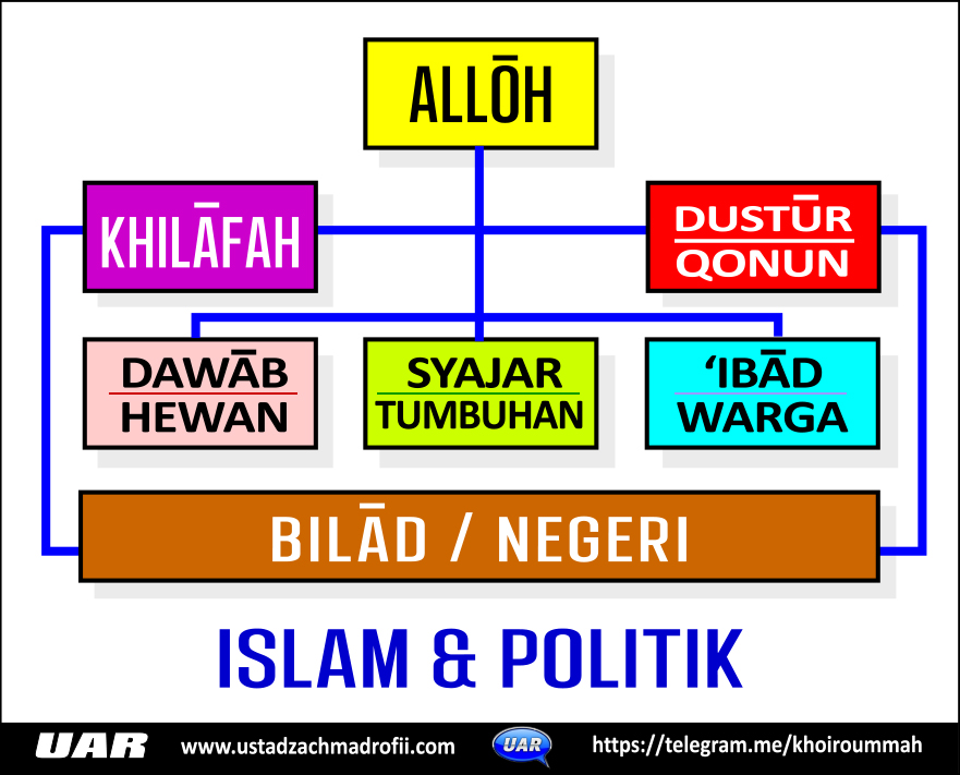 Pada bagian tengah Gambar #1, maka kita (Manusia) adalah berstatus sebagai: ‘Abdun (Hamba) Allōh سبحانه وتعالى yang Tugas Hidup kita adalah Tunduk – Patuh – Taat – Pasrah dalam ber-hamba serta beribadah pada Allōh سبحانه وتعالى, sebagaimana firman-Nya: